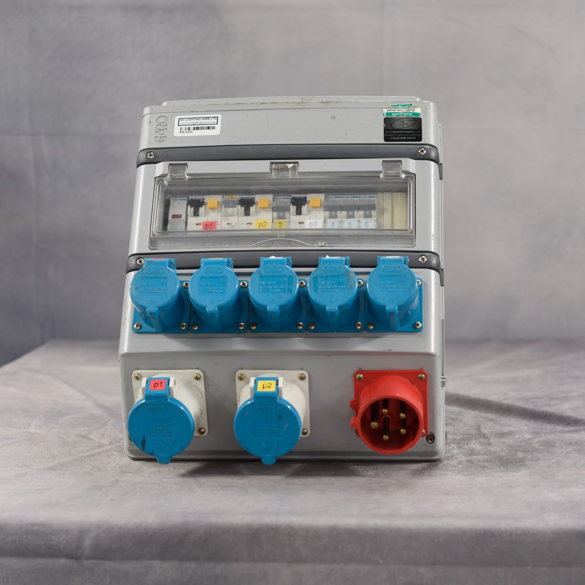 The 32A 400V Fixo distribution board is a wall-mountable board for indoor use only. The board features a combined voltmeter and ammeter to allow easy monitoring of the power being drawn. Enclosure made from thermoplastic, with a metal carry handle. This product is commonly used for Site Power Distribution and Temporary Power Distribution. The Fixo board is ideal for caterers, discos, and smaller marquees.