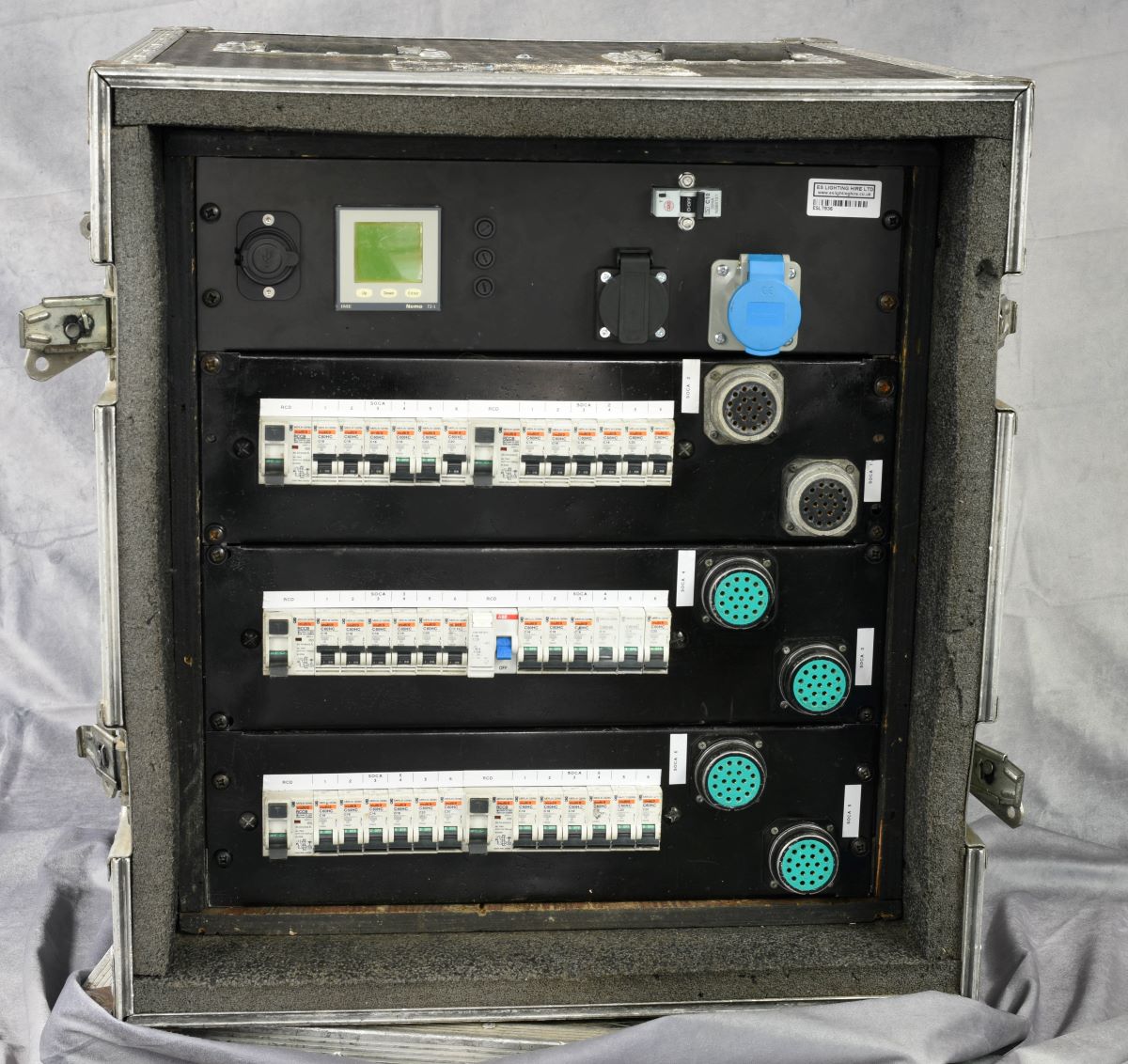 This 63A 400V Hotpower Rack is a modular distribution board. It is ideal for all stage and event environments. Each phase is fitted with 2 Socapex outlets. Each of these outlets has MCB protection. In addition, there is RCD protection overall. The Hotpower Rack is also fitted with a 32 Amp three-phase outlet. Finally, there is both a 16 Amp 230 Volt socket and a 13 Amp 230 Volt socket fitted to the hot power rack.