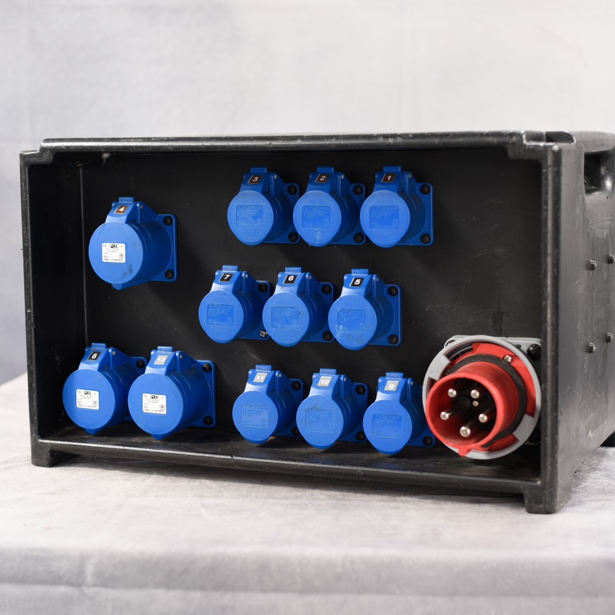 The 63A 400V Type 2 Distribution Board is robust, lightweight and made of shock-resistant thermoplastic. The main features of these distribution boards are robustness, mobility and operational safety Furthermore, the board is weather resistant and age resistant. Distribution boards are designed to distribute temporary power from one area to another. The simple plug and play design means that the board is easy to use.
